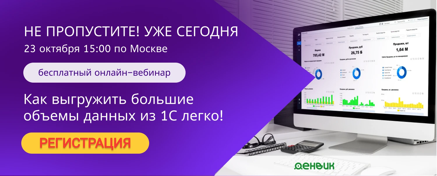 Денвик является разработчиком Экстрактора данных 1С в BI, продукта предназначенного для быстрой и удобной выгрузки данных из 1С.
