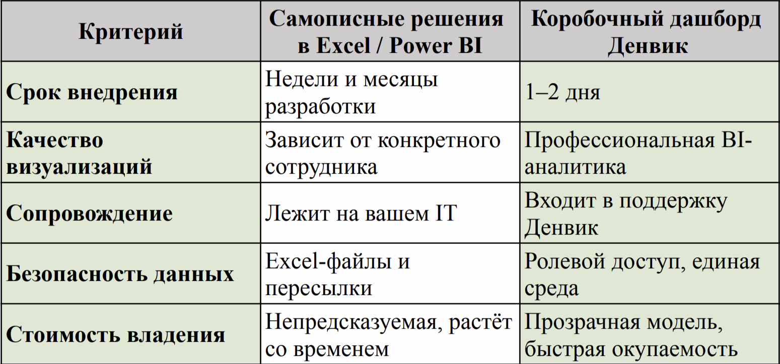 Важно: в некоторых случаях Excel-каша не устраняется одной коробкой, если процессы компании изначально ведутся фрагментарно. Но подключение BI-аналитики создаёт единый источник истины, что постепенно уменьшает тень.